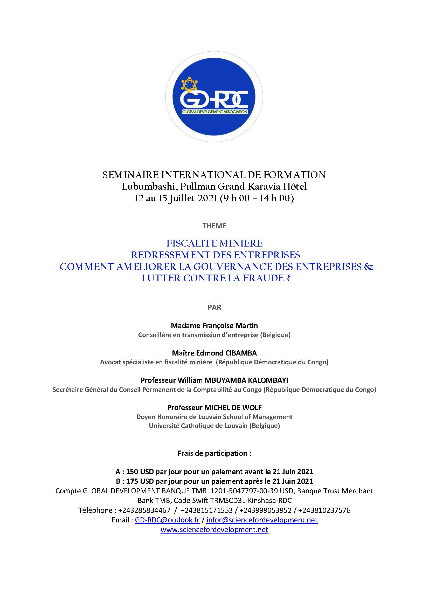 Email : GD-RDC@outlook.fr / infor@sciencefordevelopment.net
